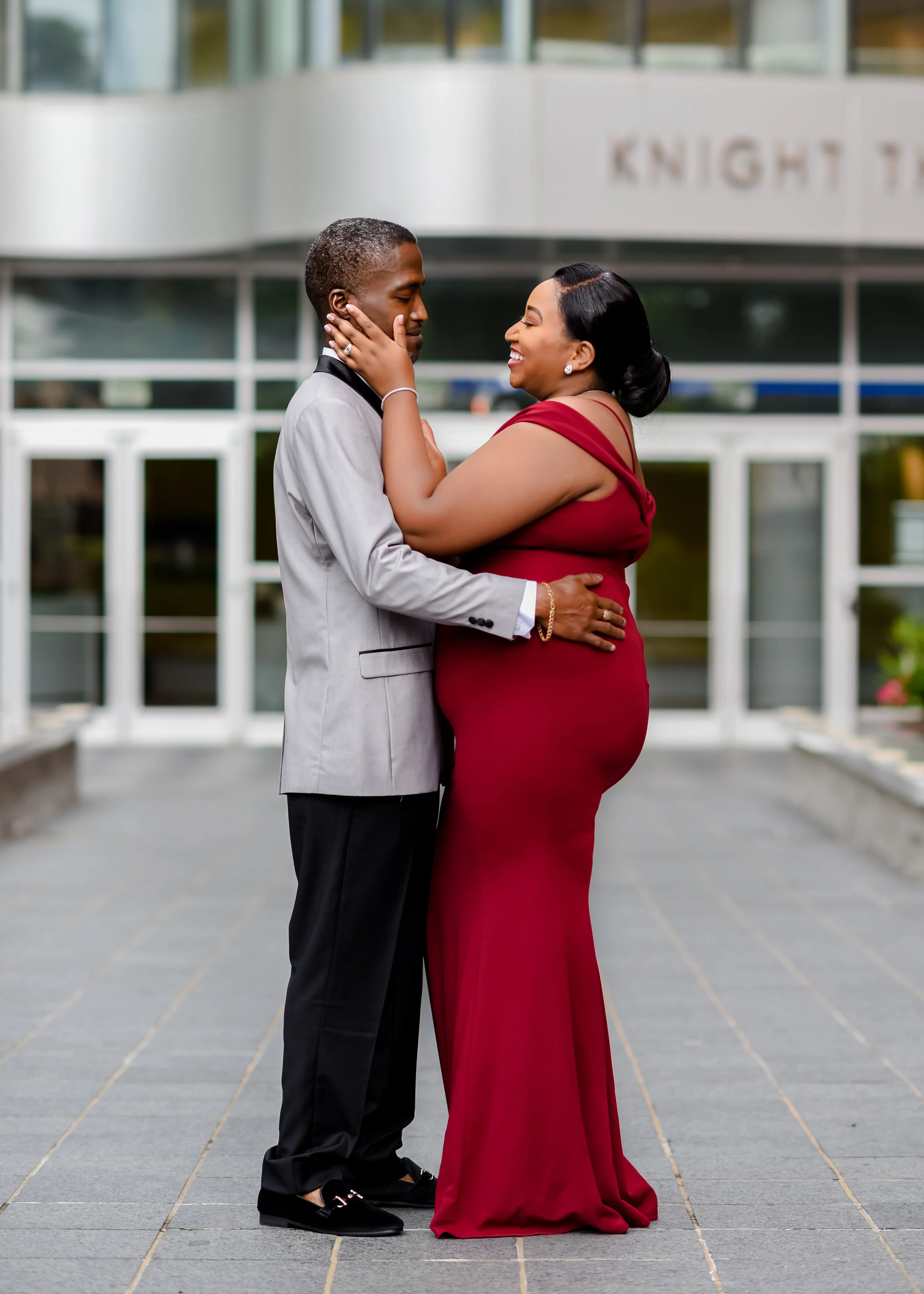 I knew I wanted to take formal engagement photos. I love how elegant they are and it gave me a chance to get comfortable with poses that I want for my wedding day. Our photographs were taken by Denise Benson Photography in Charlotte, NC. I wanted a skyline and it was so important that I got it. Needless to say...NAILED IT!!!