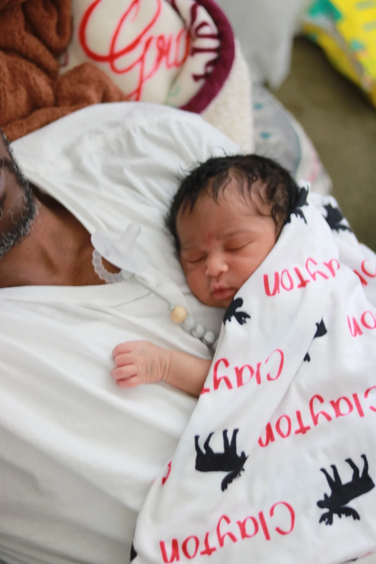 My favorite part about our swaddle is that I was able to put his name on it. His name is very special to me because before he was even conceived I had a dream in early 2017 about a baby named Clayton and I didn’t know that this baby would be mine. Fast forward to June 2018 I find out I’m pregnant and a few months later we discovered it was a boy. So there was no doubt what his name would be.